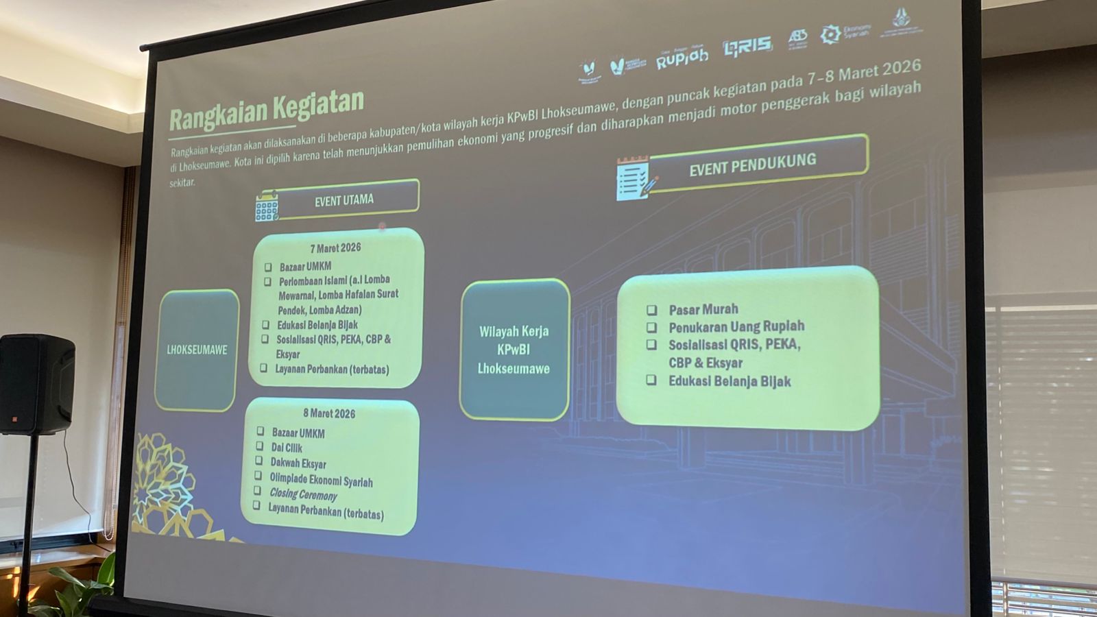 “Tema yang kami usung adalah momentum bangkit bersama dalam penguatan ekonomi syariah. Kita ingin mendorong pemulihan ekonomi masyarakat melalui berbagai kegiatan, terutama pemberdayaan UMKM agar bisa naik kelas melalui standar halal dan digitalisasi,” ujar Prabu Dewanto dalam pemaparannya di Kantor BI Lhokseumawe, Kamis (5/3/2026) sore.