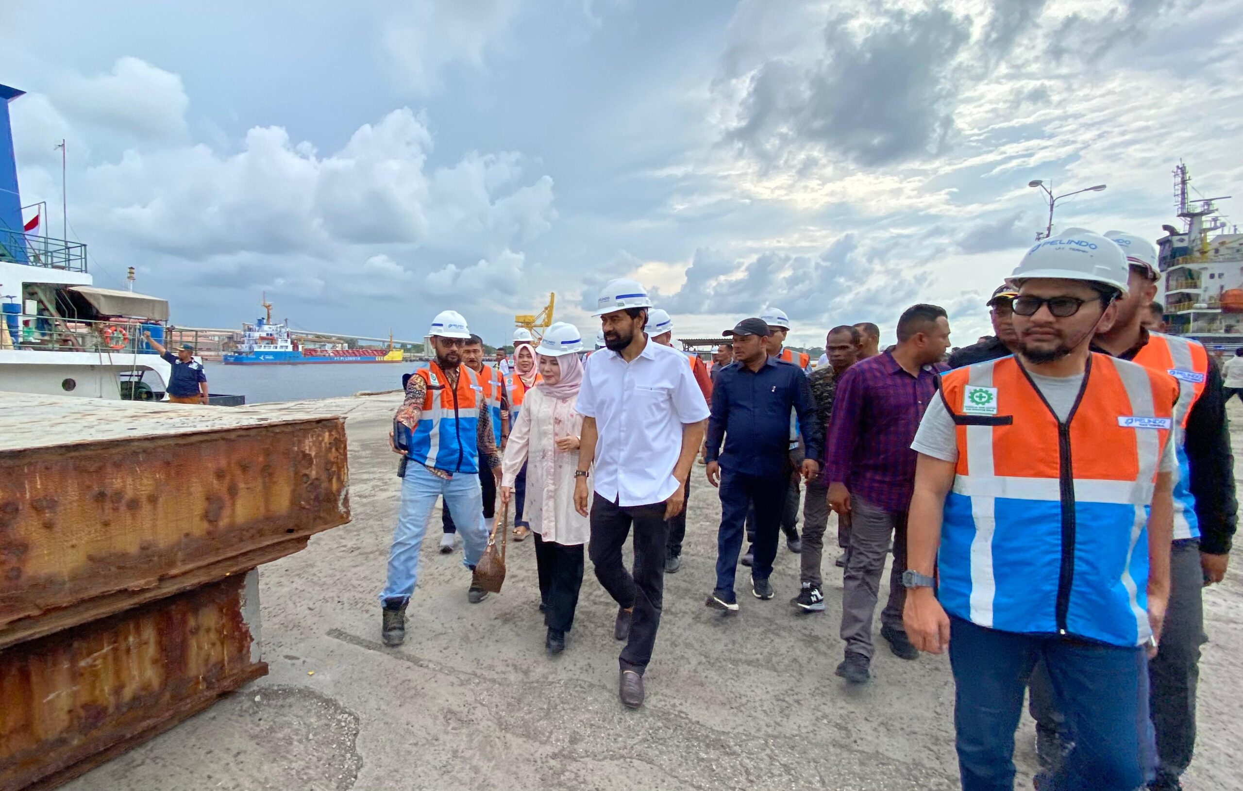 Mualem turut didampingi Salmawati akrab disapa Bunda Salma, Wakil Bupati Aceh Utara Tarmizi Panyang, Pelindo, KPLP, Pospol Pelabuhan, Humas Harbour Energy dan Investor Negeri Jiran, Malaysia.