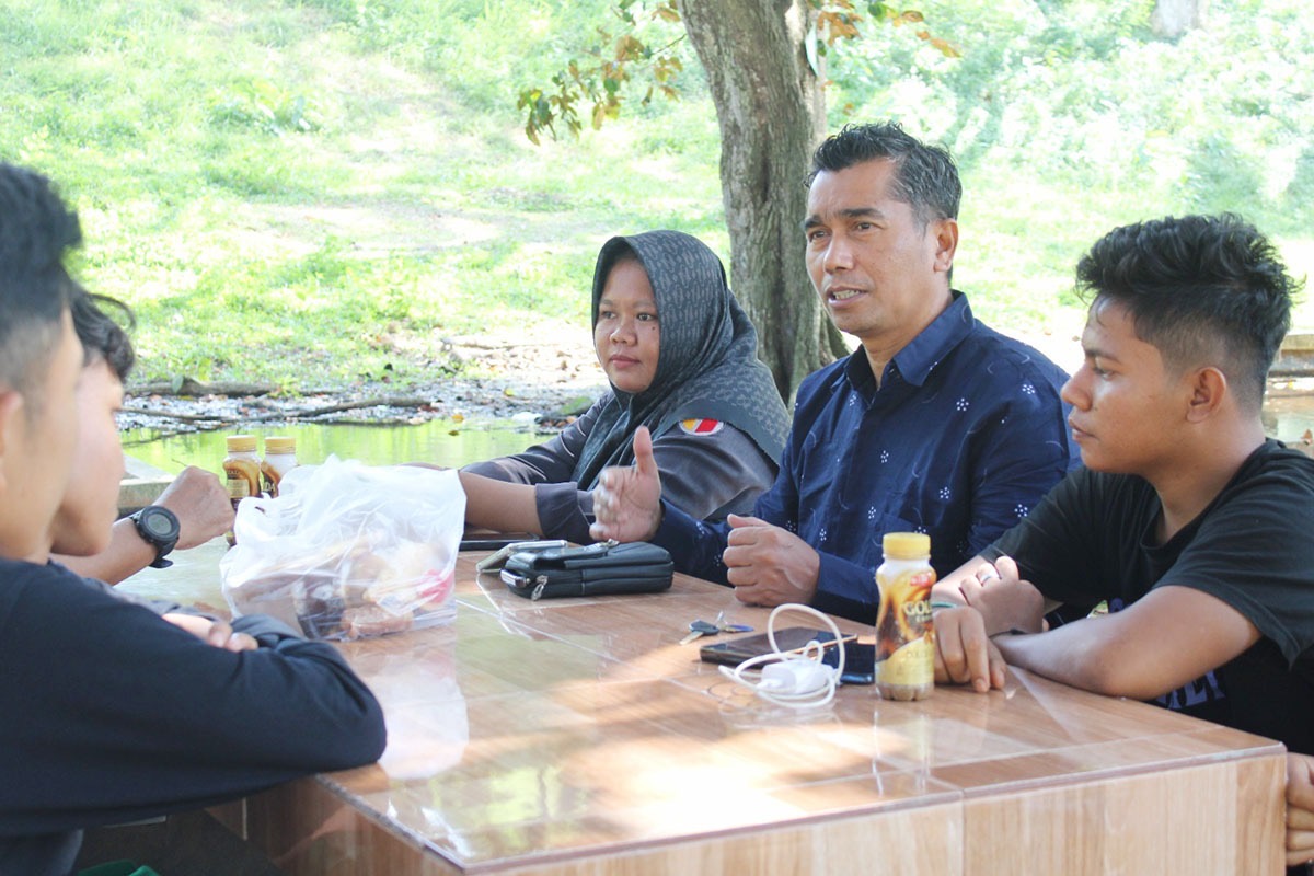 Bawaslu Kota Lhokseumawe dengan sejumlah aktivis mahasiswa Univeritas Malikussaleh di taman Kampus Bukit Indah, Lhokseumawe, Selasa (27/1/2026).