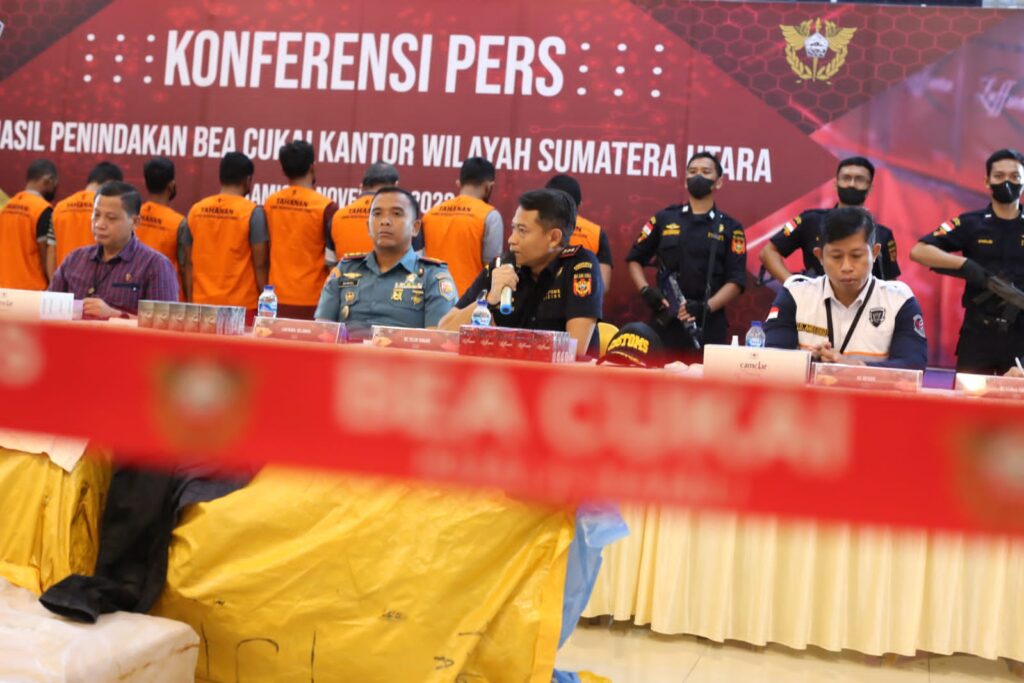 “Penindakan ini merupakan hasil sinergi dalam memberantas peredaran barang-barang ilegal. Terkait penindakan kali ini, sembilan orang ditetapkan tersangka,” kata Fatoni dalam konferensi pers di Gedung Keuangan Negara Medan, Jalan Diponegoro, Kota Medan, Kamis (3/11/2022).