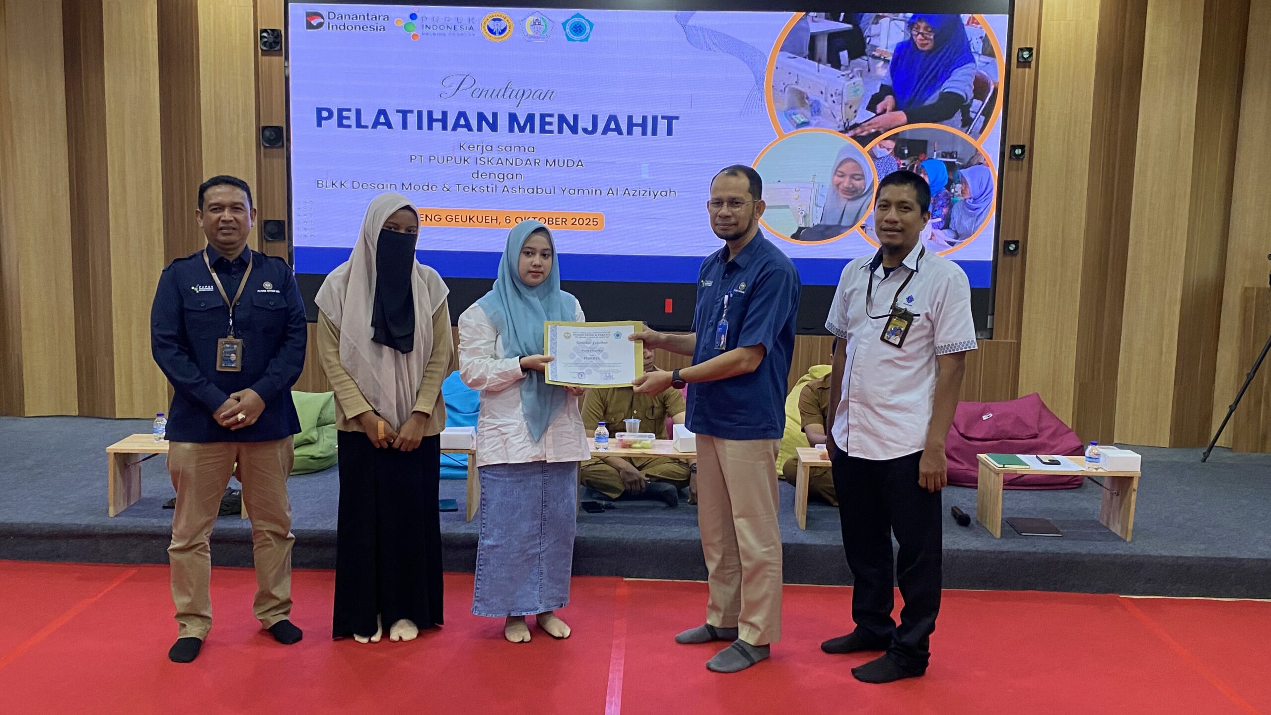 Kegiatan ini berlangsung di Gedung Learning Developmen Center PT PIM, Krueng Geukueh, Kecamatan Dewantara, Aceh Utara, pada Senin (6/10/2025). Sebanyak 32 peserta mengikuti pelatihan kali ini, terdiri atas 16 orang peserta pelatihan barista dan 16 tata rias kecantikan dan Penata Rambut Wanita serta 17 peserta pelatihan menjahit yang menutup masa pelatihannya hari itu.