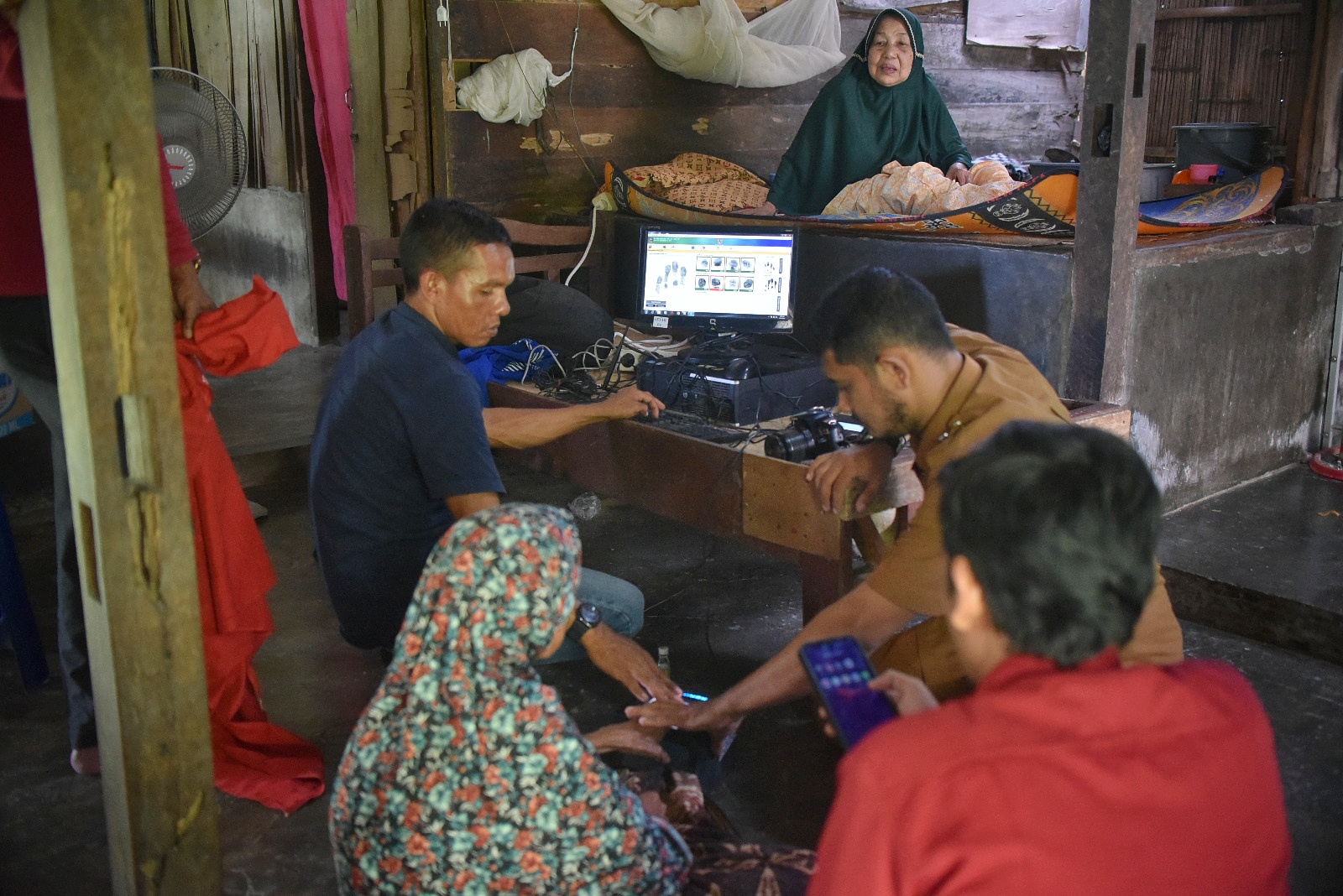 ACEH UTARA – Dinas Kependudukan dan Pencatatan Sipil Kabupaten Aceh Utara, mengerahkan petugas melakukan jemput bola door to door turun ke desa-desa mendatangi warga lansia guna merekam data kependudukan yang dibutuhkan untuk penerbitan e-KTP atau kartu tanda penduduk elektronik di rumah warga tersebut.