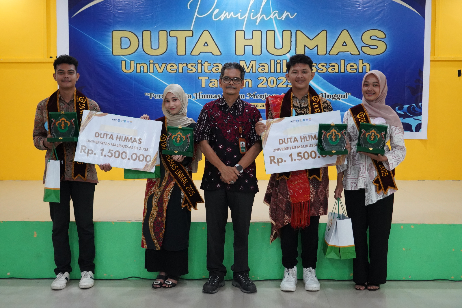 Setelah melewati penilaian dari penampilan bakat, dewan juri akhirnya menetapkan empat nama yang dinobatkan sebagai Duta Humas Universitas Malikussaleh 2025, yaitu Rais Akbar (Prodi Teknik Industri), Raizya Kemala Hayati (Prodi Ilmu Komunikasi), Alfazila br Barus (Prodi Psikologi), dan Ery Ardiansyah Sinaga (Prodi Sistem Informasi).