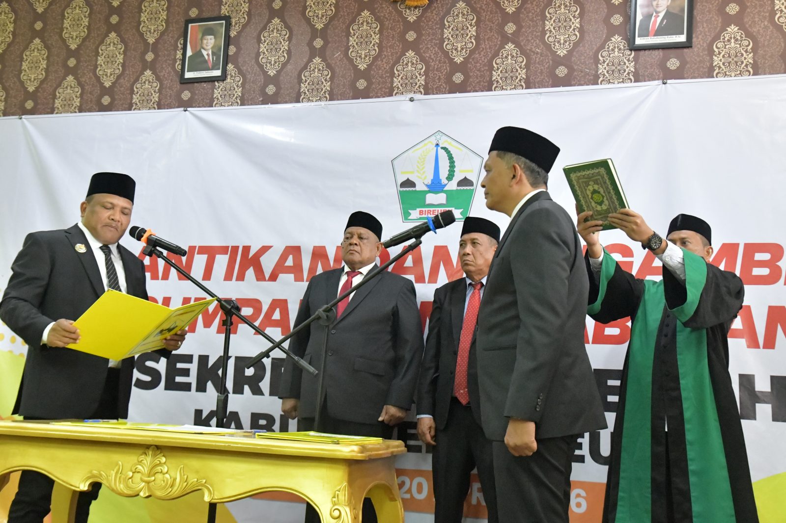 Pelantikan tersebut dipimpin langsung oleh Bupati Bireuen, Ir. Mukhlis, S.T. Dalam sambutannya, Bupati Bireuen, menerangkan bahwa pelantikan yang dilaksanakan hari ini telah melalui prosedur dan ketentuan perundang-undangan yang berlaku. Hal ini menunjukkan bahwa pelantikan Sekretaris Daerah hari ini telah melalui proses seleksi terbuka dan kompetitif (open bidding) yang mengedepankan aspek kompetensi, kualifikasi, dan integritas.