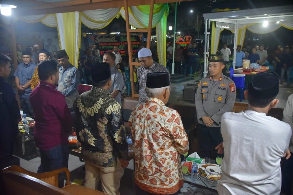 KRUENG GEUKUEH – Kepala Kepolisian Sektor (Polsek) Dewantara, Iptu Subihan Afuan Ardhi, STrK mengadakan acara syukuran atas kenaikan pangkatnya dengan memberi santunan kepada anak yatim-piatu serta kenduri bersama masyarakat di Polsek setempat, Minggu (3/7/2022).