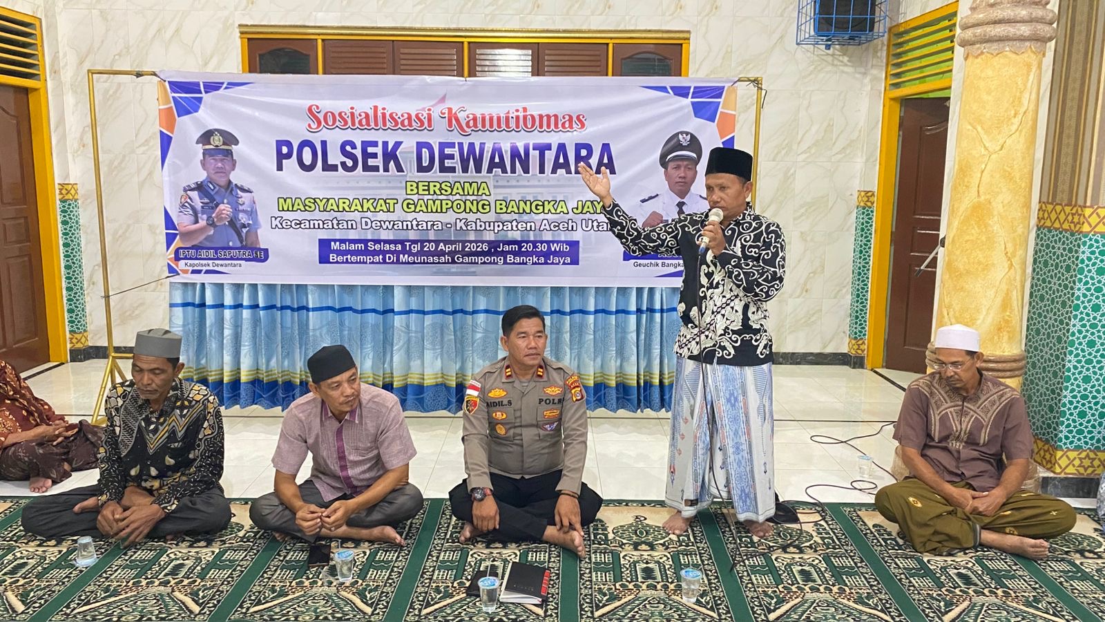 ACEH UTARA – Kapolsek Dewantara, Iptu Aidil Saputra, menegaskan komitmennya untuk mengubah paradigma masyarakat terhadap institusi kepolisian. Hal tersebut disampaikannya dalam agenda sosialisasi Kamtibmas dan silaturahmi bersama warga di Meunasah Gampong Bangka Jaya, Senin malam (20/4/2026).