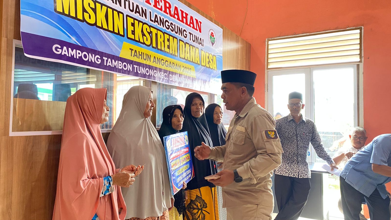 ACEH UTARA – Pemerintah Gampong Tambon Tunong, Kecamatan Dewantara, Aceh Utara menyalurkan bantuan langsung tunai (BLT) untuk warga rentan miskin ekstrem, menggunakan anggaran yang bersumber dari Dana Desa Tahun 2025.