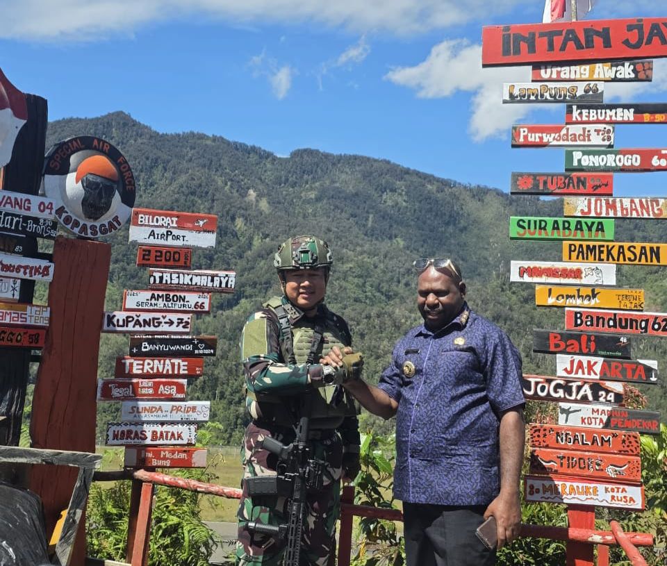 Di Sugapa, Pangkoopsud III bertemu dengan Bupati Intan Jaya, Drs. Paulus Waterpauw, untuk membahas sinergi dan dukungan terhadap pembangunan daerah.