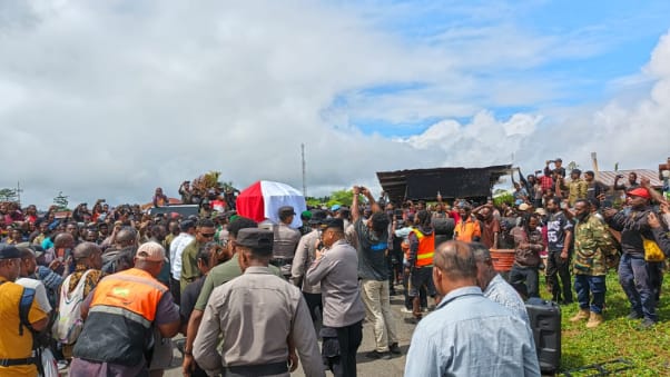 Nduga, Papua Pegunungan – Suasana duka menyelimuti Bandara Kenyam saat jenazah Bupati Nduga, Dinar O. Kelnea, tiba untuk disambut keluarga dan masyarakat setempat. Prosesi penyambutan berjalan dengan khidmat dan penuh penghormatan dari seluruh pihak yang terlibat, pada Rabu (16/7/2025).