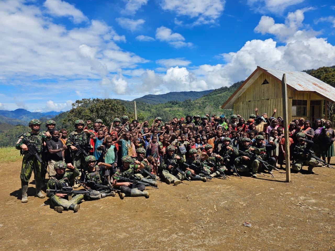 Intan Jaya, Papua Tengah – Puluhan Prajurit Satgas Pamtas RI – PNG Mobile Yonif 113/JS bersama masyarakat setempat melaksanakan Ibadah di Gereja GKII Pogapa Distrik Homeyo Kabupaten Intan Jaya Papua Tengah, Minggu (28/9/2025).
