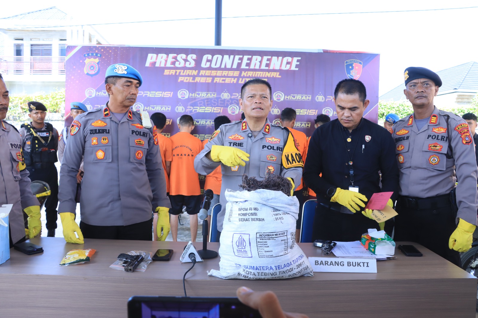 Hal itu disampaikan Kapolres Aceh Utara AKBP Trie Aprianto, kepada awak media pada Kamis (25/7/2025). Ketiga pelaku yang diamankan masing-masing berinisial FM (25), warga Gampong Cot Tufah, Kecamatan Paya Bakong, Aceh Utara; IA (30), warga Gampong Jambo Timu, Kecamatan Blang Mangat, Kota Lhokseumawe; dan MY (56), warga Kota Lhoksukon, Aceh Utara.