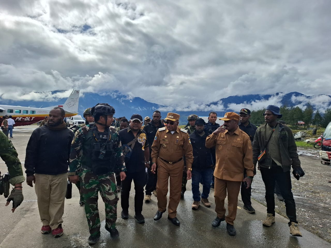 Turut mengantar Bupati dan Wakil Bupati, antara lain Mayor Inf Kadek Sucipta, Dansektor II Kopasgat Lettu Pas Irfan Fakhrisyam, Danpos Kopasgat Letda Pas Richo Hamdan, Kapospol Ipda Melkias Mara, Kapolres Puncak Kompol Mahdi Marpaung, Plt. Sekda Puncak Nenu Tabuni, Ketua DPRK Thomas Tabuni, dan Dandim Puncak Letkol Inf Himawan.