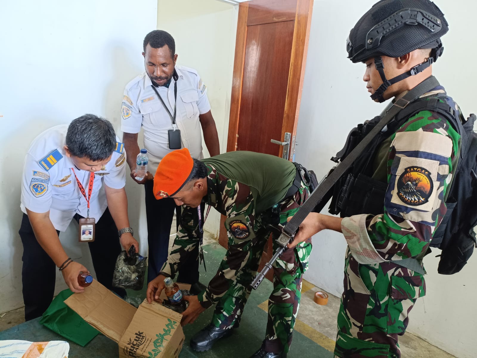 PAPUA TENGAH — Komitmen TNI dalam menjaga keamanan dan ketertiban di wilayah udara kembali dibuktikan. Personel Satgas Kopasgat yang bertugas di Bandara Douw Aturure, Papua Tengah, berhasil menggagalkan upaya pengiriman minuman keras ilegal yang disamarkan dalam botol air mineral.