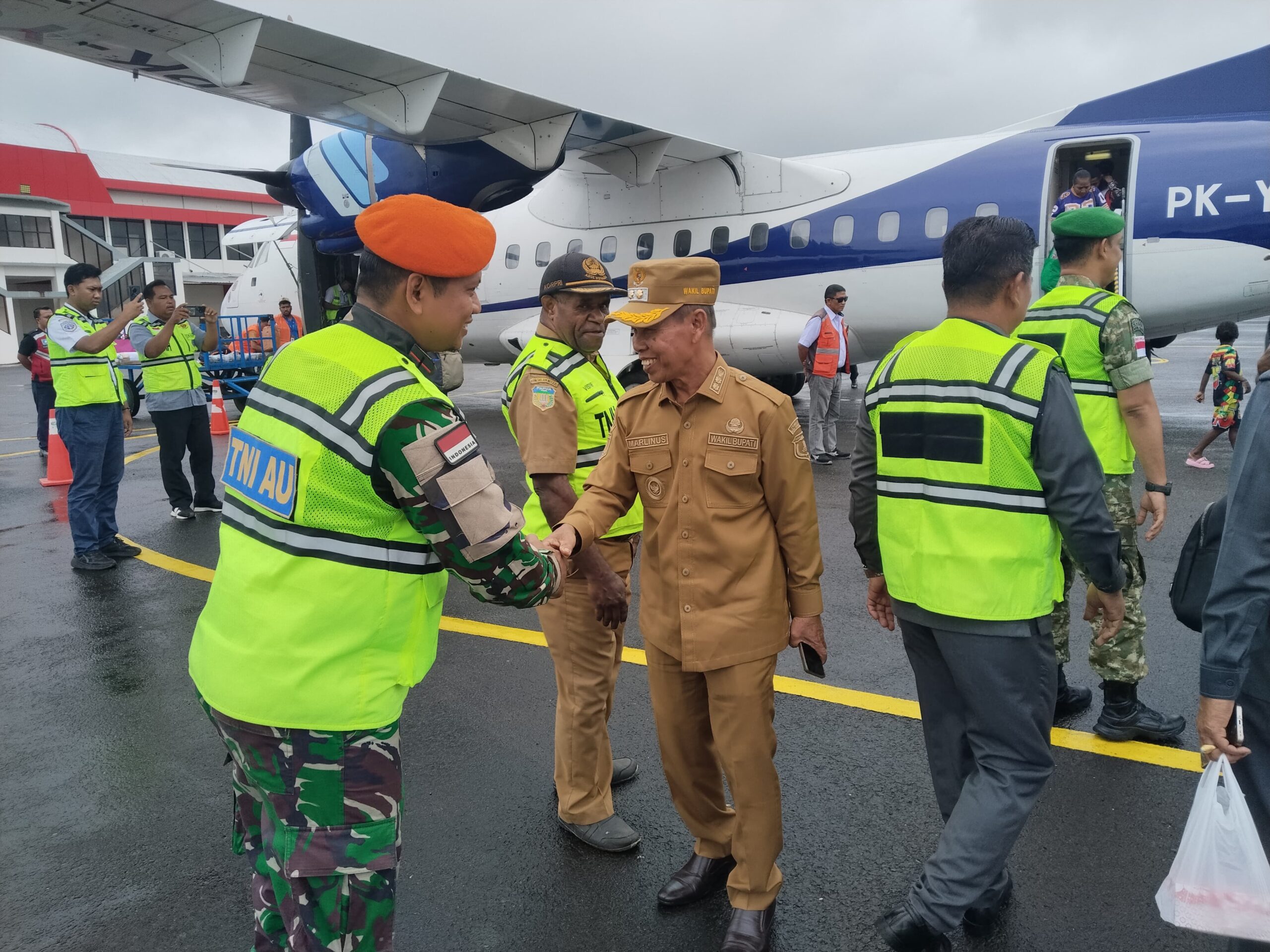 Satgas Korpasgat Sambut Bupati dan Wakil Bupati Boven Digoel Terpilih di Bandara Tanah Merah